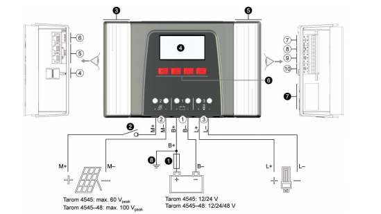Numerose funzioni intelligenti consentono all’utente di adattare il controller alle particolari caratteristiche del sistema in questione. Grazie alla determinazione dello stato di carica notevolmente migliorata, il sistema è controllato in modo ottimale e le batterie sono protette. Il regolatore di carica Steca Tarom è la scelta ideale per sistemi più grandi con tre livelli di tensione (12 V, 24 V, 48 V).