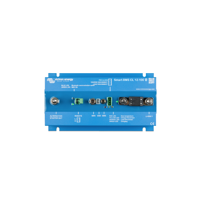 Il BMS CL 12/100 monitorizza e protegge ogni singola cella della batteria (o del banco batterie) e scollega l’alternatore, le fonti di carica o i carichi in CC in caso di bassa tensione batteria, alta tensione batteria o sovratemperatura.