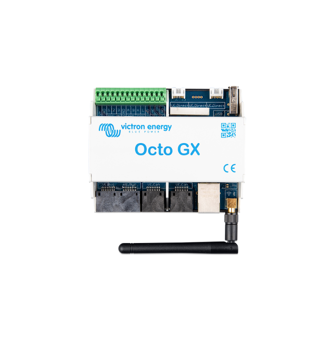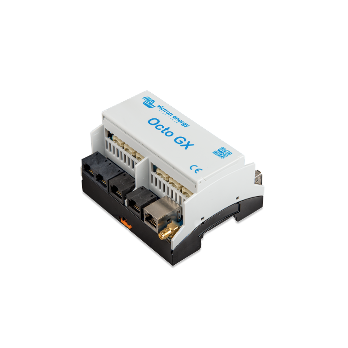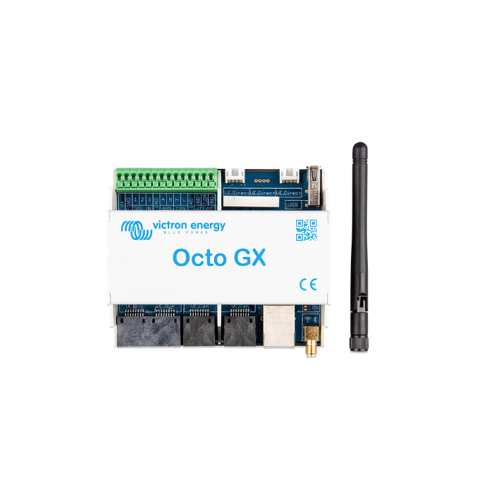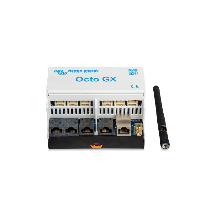 Il Octo GX è il centro comunicazioni del vostro impianto. Collega i componenti fra loro e si assicura che funzionino in armonia. Il monitoraggio dei dati dal vivo e il cambio delle impostazioni si possono eseguire mediante lo smartphone (o un altro dispositivo) entrando nel nostro sito gratuito Victron Remote Management Portal, VRM.Il Octo GX fa parte della famiglia di Prodotti GX. Il Octo GX è il più adatto per impianti con vari Caricatori Solari MPPT, giacché possiede 10 porte VE.Direct.